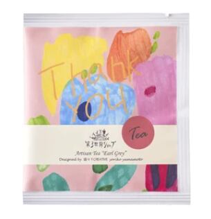 アールグレイティーは山本 頼子さんの「Thank you」のアートワークがデザインされたパッケージ。