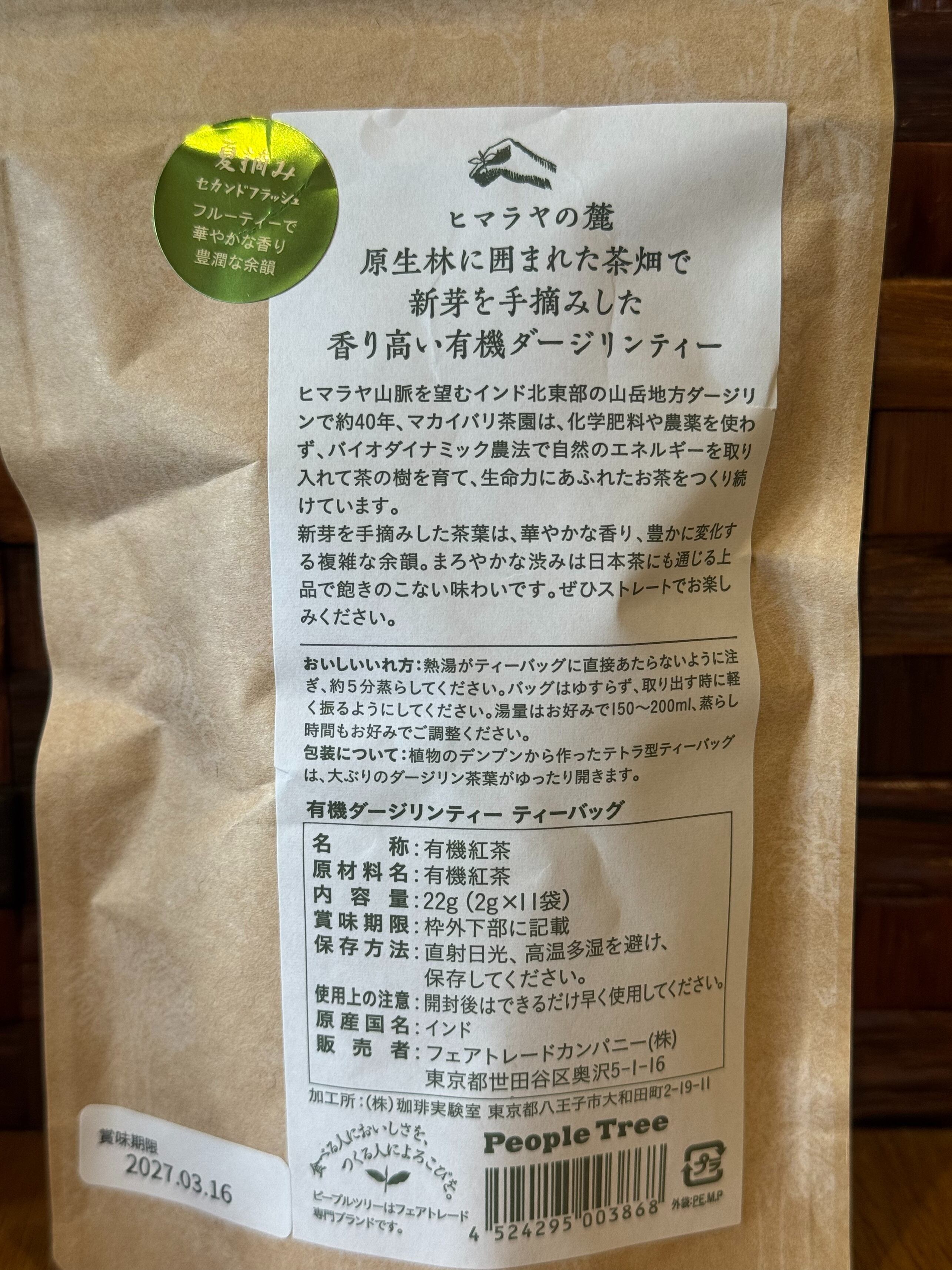 【フェアトレード】有機(オーガニック)ダージリンティー・ティーバッグ[紅茶]